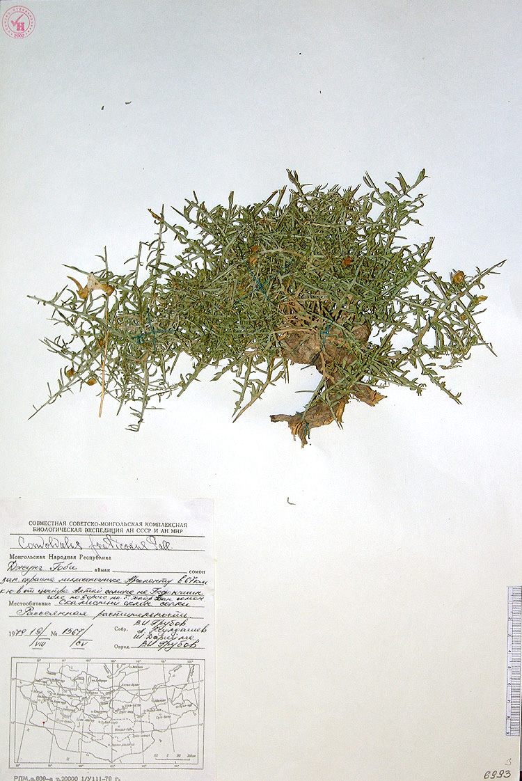 Joint Soviet-Mongolian complex biological expedition of Academy of Sciences of USSR and Academy of Sciences of MPR, Mongolian People's Republic, Dzungarian Gobi, western margin of minor hills Argalantu, 67 km south-east of the center of Altyn somon on the Bodonchiin Gol along the road to Khair Khan somon, rocky hillside, sparse vegetation, 19.VIII.1971, coll. Grubov V.I., Muldashev A., Darijma Sh., No 1567/CV