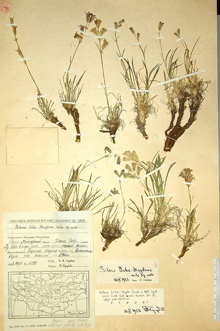 Mongolian People's Republic, Bain Khongor aimag, Bain Gobi somon, Ikhe-Bogdo-Ula Range, south-eastern slope, Narin-Khurulet gorge, eastern side, on rocks, 2900 m, 28.VII.1948, coll. Grubov V.I., No 6195