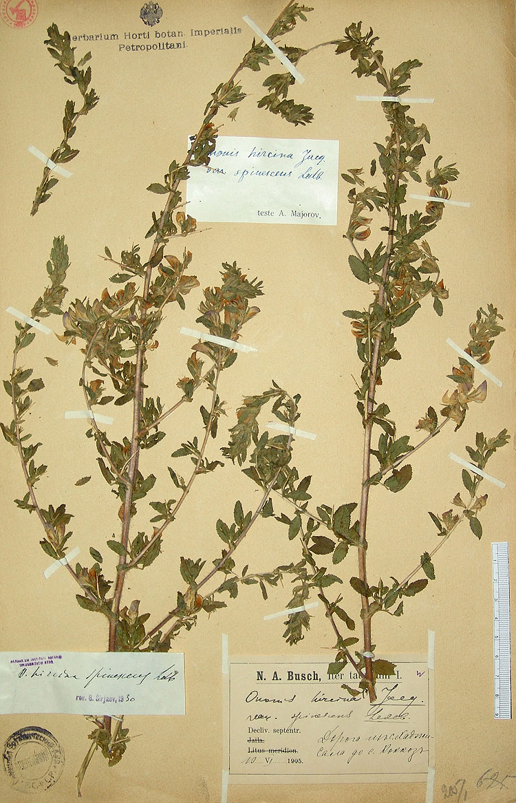 The label is printed, with locality and date of collection written by hand. There is a stamp on the herbarium sheet, with the text: "Herbarium Horti botan. Imperialis Petropolitani." and the State Emblem of the Russian Empire.