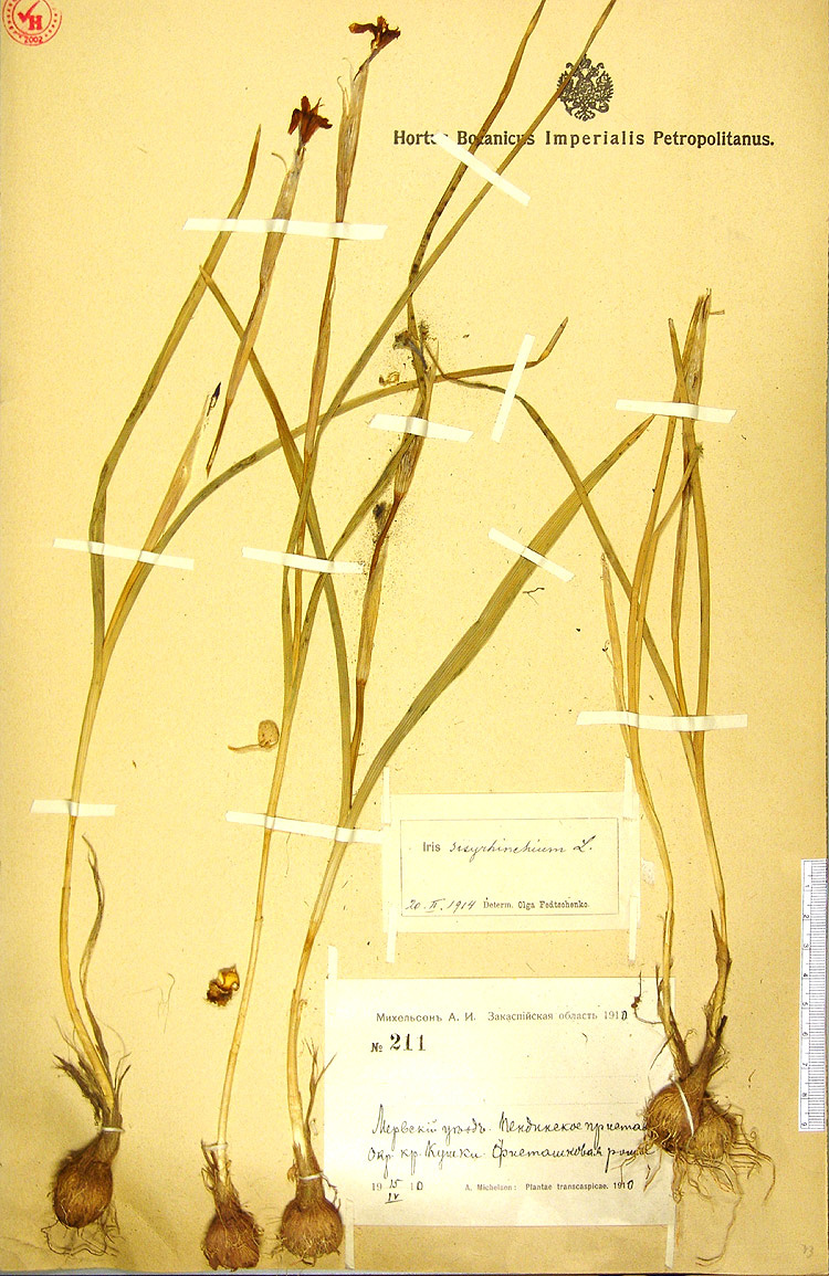 There are printed title "Hortus Botanicus Imperialis Petropolitanus" and the State Emblem of the Russian Empire on the herbarium sheet.
