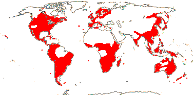 1/65. Especially South Africa, also east Africa, Cape Verde Islands. Map: from Thulin (1978).