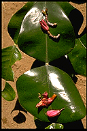 Similarly, Phyllarthron, a genus of Bignoniaceae endemic to Madagascar, has about a dozen species, all of which have phyllodes -- the modified petiole/rachis of a compound leaf that has lost its leaflets -- that function like leaf blades. These phyllodes are clearly adaptations to dry environments. Phyllarthron berniereanum occurs in the extremely dry south, where one would expect to see it. But a number of other species (e.g., P. articulatum, P. cauliflorum, and P. antongiliensis), all of which have these distinctive phyllodes, are found in some of the country's wettest forests.