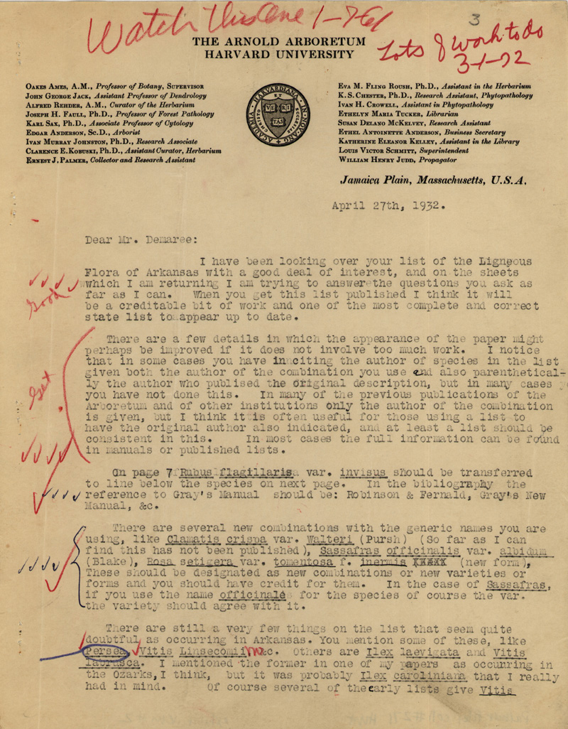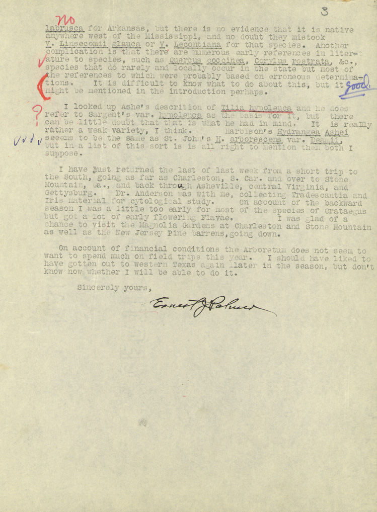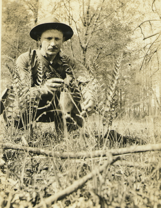 | Demaree is pictured here in 1926 near Malvern, Arkansas with Osmunda cinnamomea. Hunt Institute Collections. Click image to enlarge. (118 KB) | E.J. Palmer 1937, in a cotton field near Pine Bluff, Arkansas. Hunt Institute collections. Click image to enlarge. (168 KB) | |||