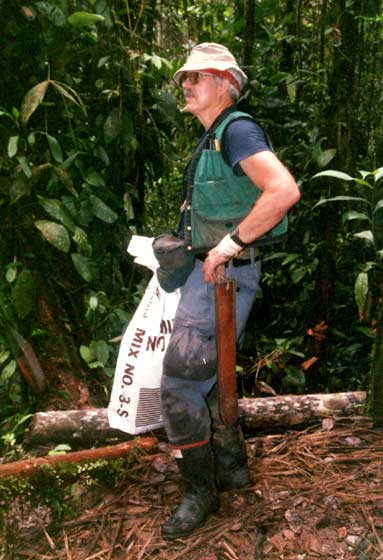 Bruce Gray is a plant systematist with CSIRO, the Australian scientific research agency, based in Queensland, Australia. His research interests center systematics of Lauraceae, an interest he shares with Henk van der Werff of Missouri Botanical Garden, and the two have frequently collaborated on fieldwork in various regions of the world. Gray participated in the floristic inventory of the Cordillera del Cóndor, accompanying Henk van der Werff, in October-November 2004 and October-November 2006. He is an expert at collecting herbarium specimens from tropical trees that attain heights of 30 m or more, using a slingshot to shoot a line over the topmost branches of canopy and emergent trees, and then pull the line to break a branch with fertile specimens. He used this technique to great effect on his two trips to Ecuador. He also taught these techniques to the Ecuadorian botanists in the field and presented them with the equipment after each of his field trips.