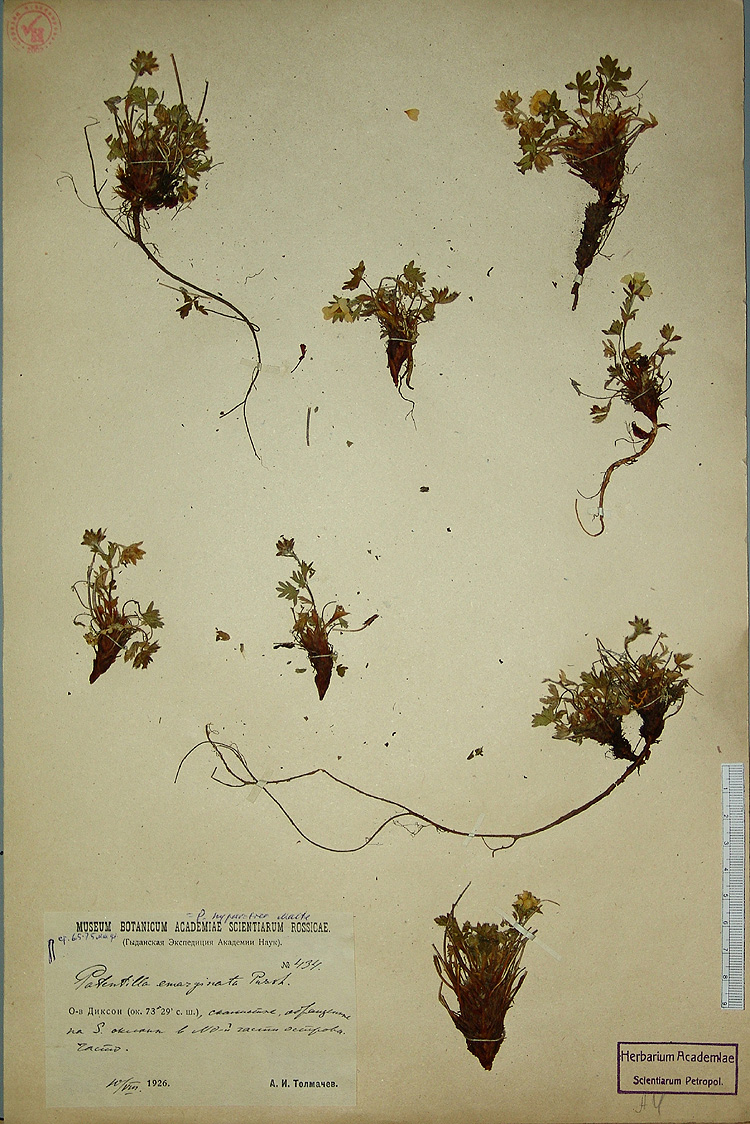 Gydanskaya expedition of Academy of Sciences, Dikson Island (about 73°29' N), rocky exposed to S slopes in NO part of the island, frequent, 10.VIII.1926, coll. A.I.Tolmatchev, No 434