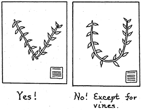 Except for vines, slightly break stems and fold them into a "V" or "N" rather than curve them: