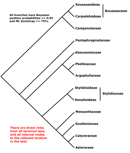 Some information is taken from Carlquist (1982: wood anatomy), Wagenitz and Laing (1984: nectaries), Ogata (1988, 1991: wood anatomy), Hoffmann and Göttmann (1990: general), Backlund and Nilsson (1997: pollen), Backlund and Pyck (1998: general), Benko-Iseppson and Morawetz (2000: general), Nilova (2001: bark anatomy) and Donoghue et al. (2001b) and especially Bell et al. (2001), both general.