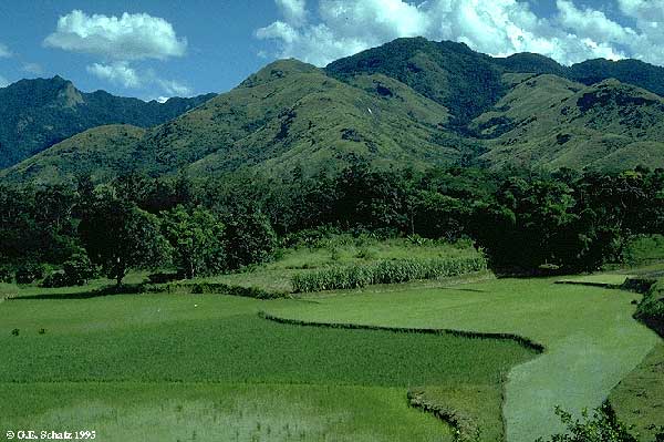 Rice paddies near Eminyminy, looking toward forested slopes in the Andohahela Strict Nature Reserve. |