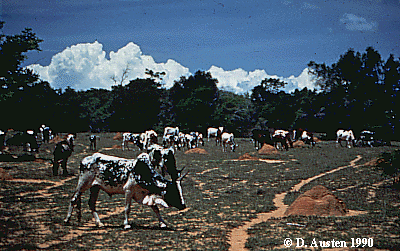 herds of grazing zebu cattle, whose numbers may be greater than