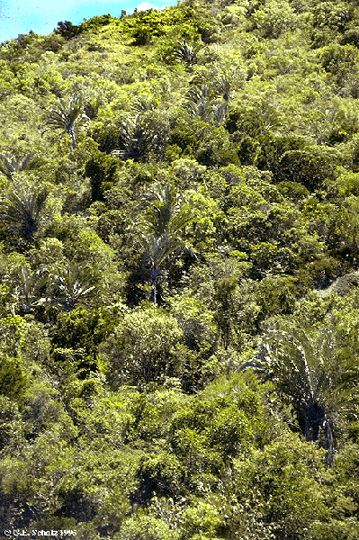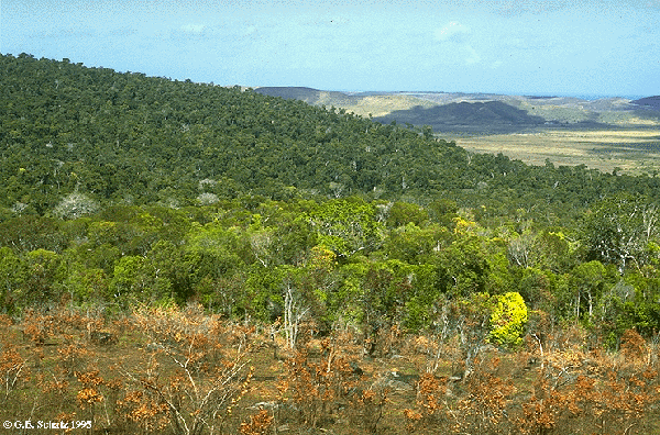 coast and the dry north of the island, an area that corresponds precisely to a restricted zone containing a number of locally endemic plant species. Similarly, the transition between the humid east coast forest and the dry south to the west of Fort Dauphin, as shown here at Parcel 3 of the Andohahela Strict Nature Reserve, harbors numerous endemic species including Dypsis decaryi.
