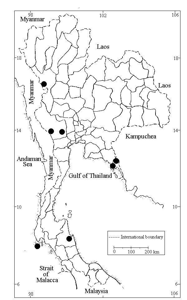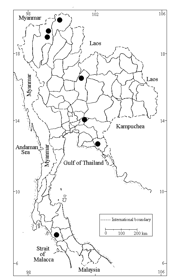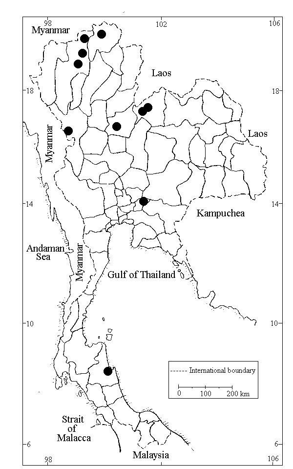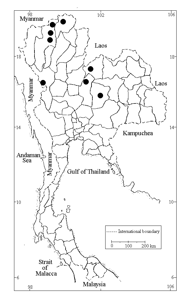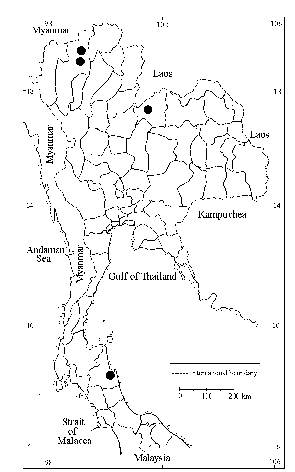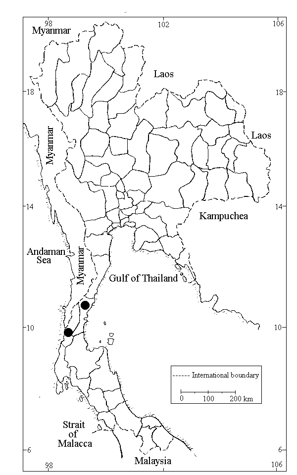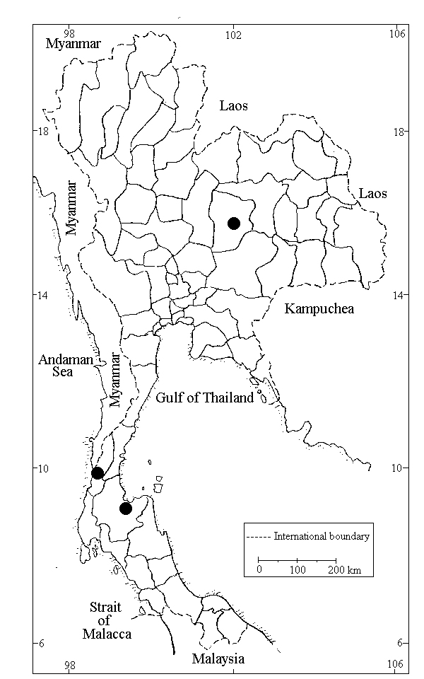 PHUKET. Ranong: Kerr 404b (BM), Dixon 1935: 20.RACHASIMA.