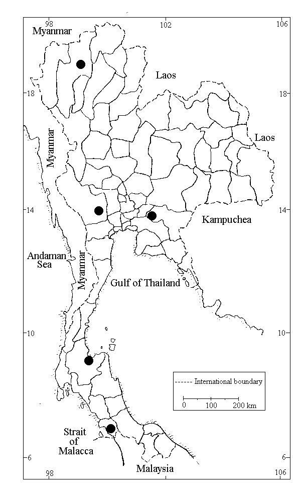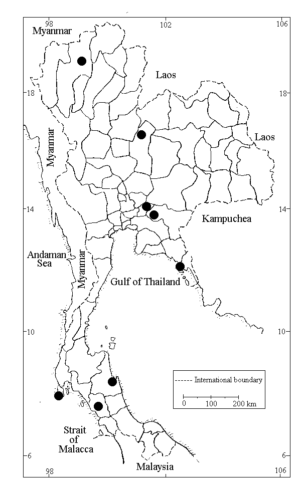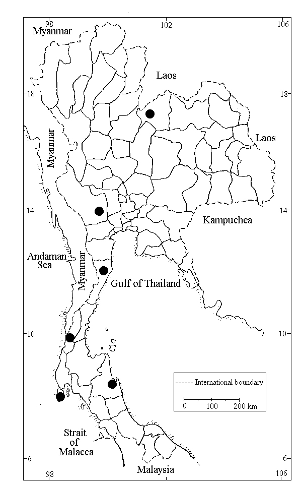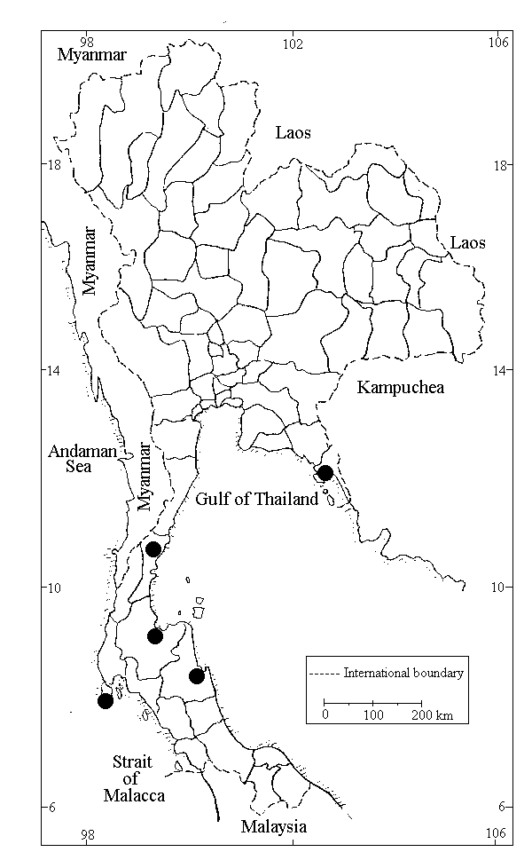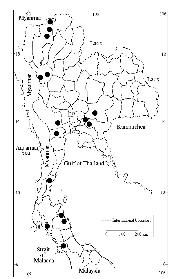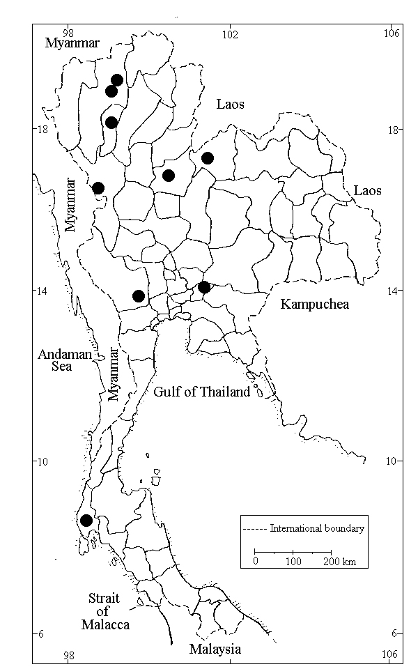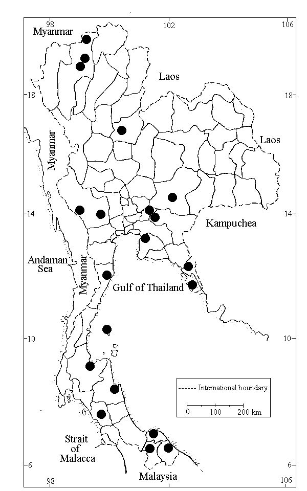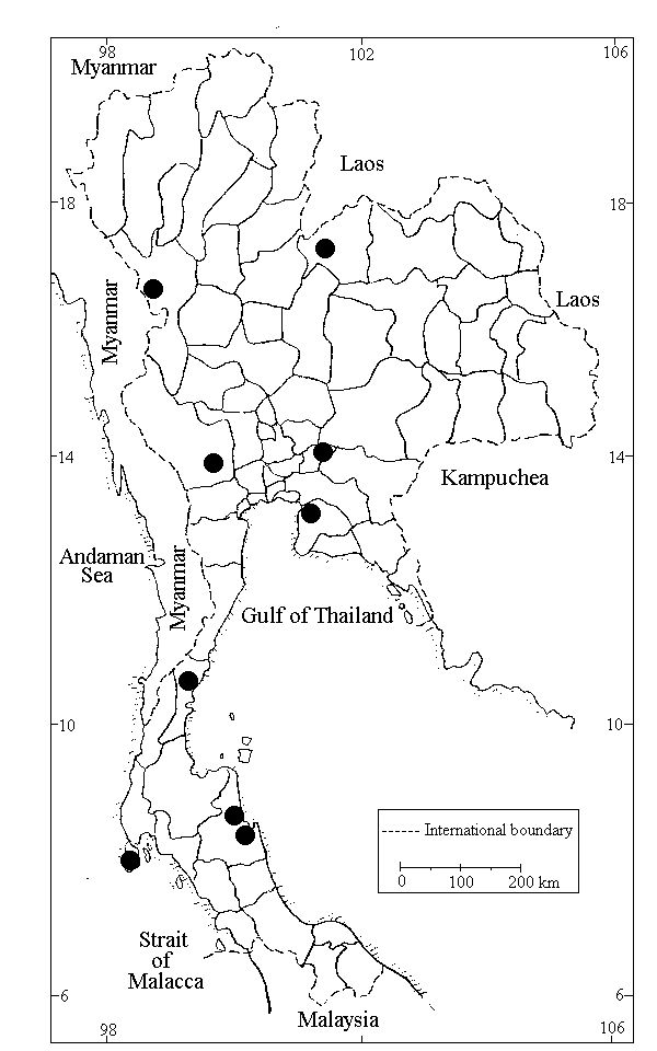 PHUKET. Ranong: Kerr 404b (BM), Dixon 1935: 20.RACHASIMA.