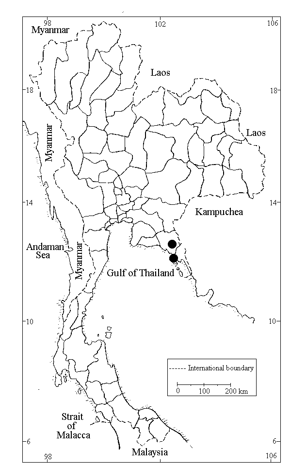 PHUKET. Phangnga: Kerr s.n. (BM), Dixon 1935: 16. PRACHINBURI.